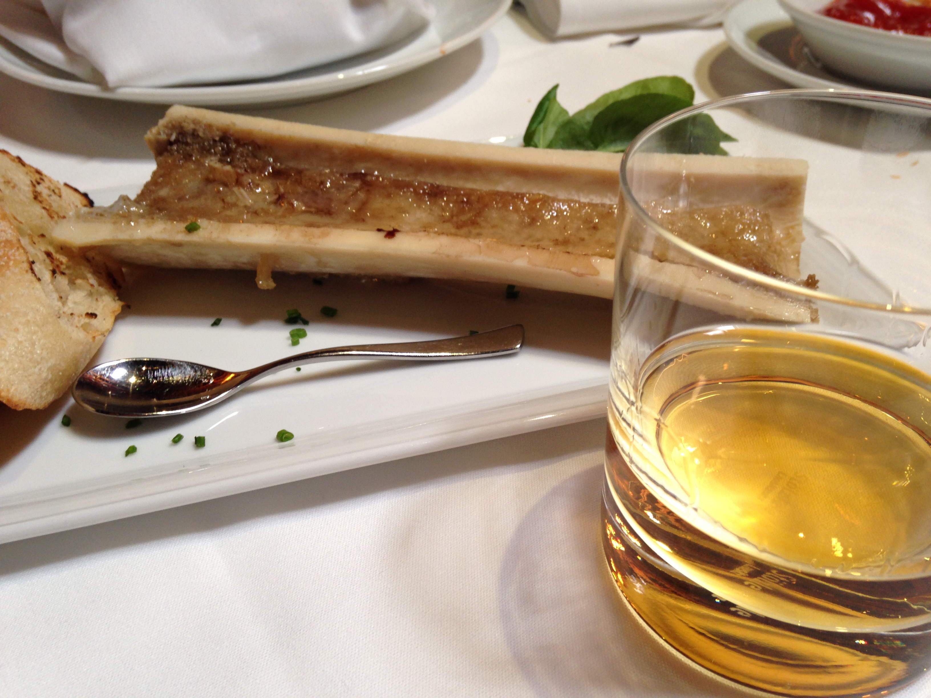 That’s right, Roasted Bone Marrow and a glass of Laphroaig 10. I have not yet posted on my love for single malt scotch, but it will happen, oh yes it will. In the meantime, this combination of a buttery, meaty taste with peat and malt blasted by the Atlantic Ocean off the coast of Islay was more than enough to put a smile on my face. What followed? Why this.
