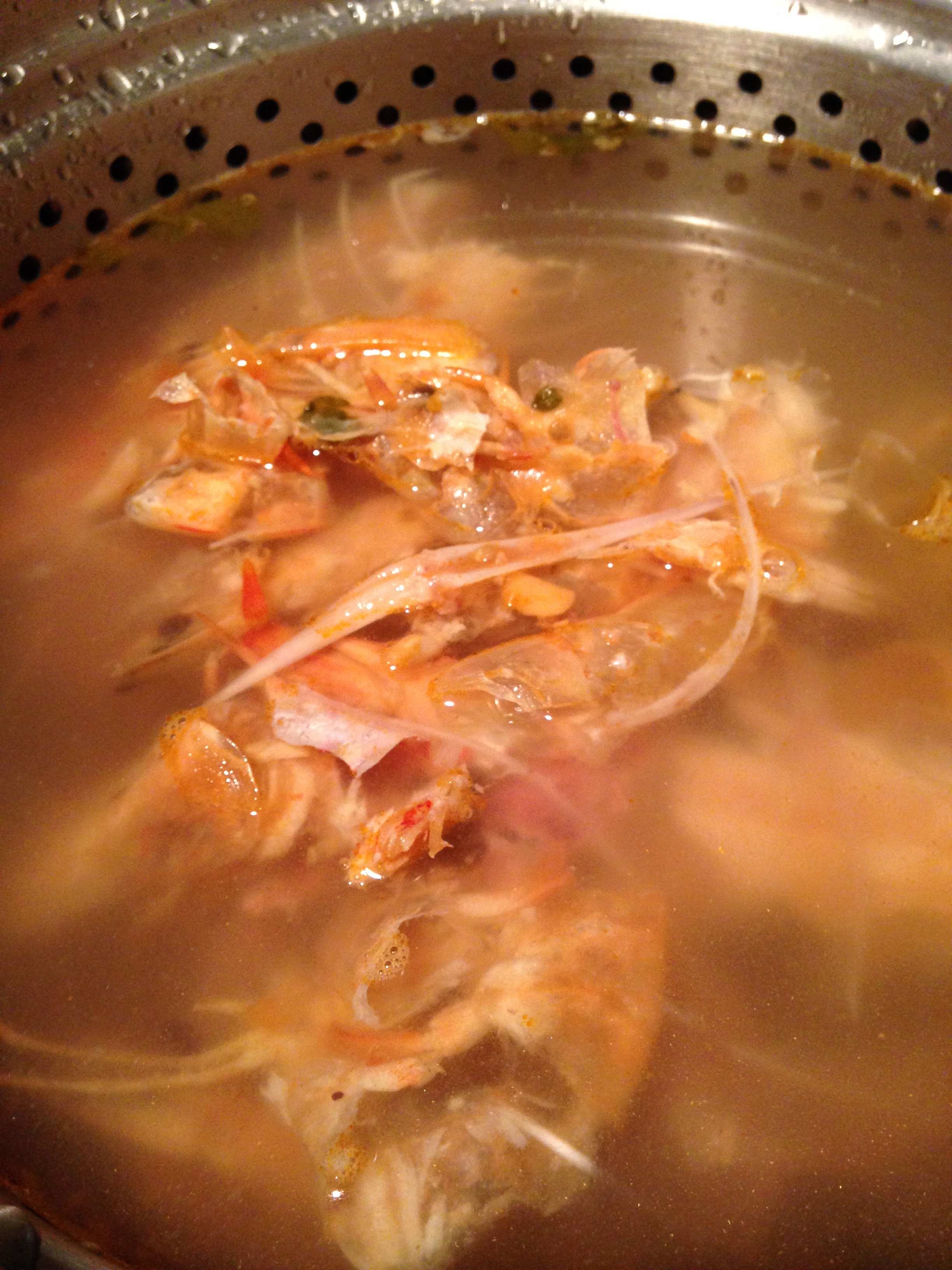 The remains of bestial eating. What to do? Well it’s time to use some magic fishbones. I pick through the remnants and assemble in a pot a respectable amount of bones, heads and shells.